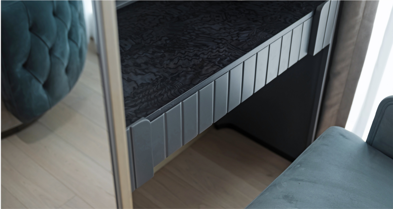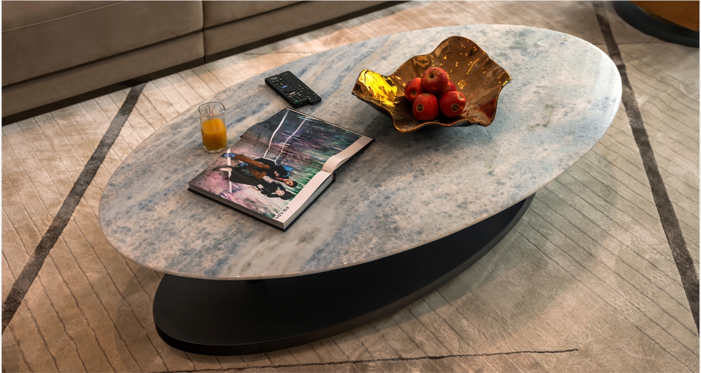 The living room is the seasoning of life, where the interplay of light and shadow imparts a superb aesthetic quality, giving the space a sense of contrast. The artful combination of materials and the stark contrasts between them, like a poet's verses, add a unique character to the home. Simple lines blend with intricate details, creating endless layers of depth in the space. A matte-textured sofa paired with a marble-finished coffee table highlights the striking Italian-inspired luxury, brought to life by the collision of different materials and textures.