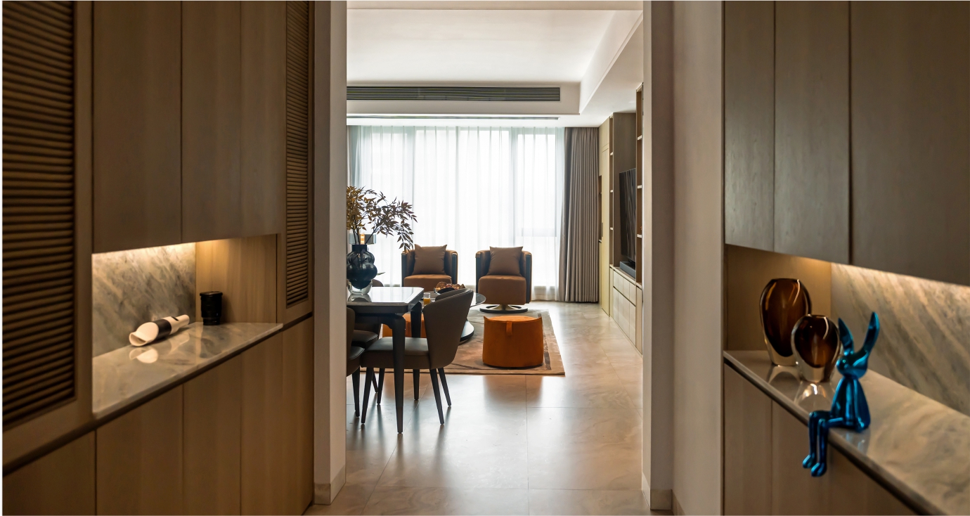 The significance of every house lies not just in being a place to settle the body and mind, but in serving as a dialogue between people and space, where they converge and coexist. FFONCHI Home begins with quality, satisfying the desire for luxurious comfort within a subtle and refined tone, and interprets a relaxed yet perfectly balanced living aesthetic. The creation of spatial ambiance is the art of space itself, with the narrative of light beginning the moment you step through the door. Here, human and space unite, body and soul resonate, allowing one to observe the bustling world with serenity and indulge in a life of elegance.