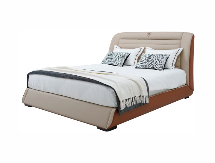 Mirror-finished champagne gold hardware; the headboard backrest is made of AL164A type leather; AL159B saddle leather on the outside of the headboard; the inner side of the bedside is made of AL159B type leather. other bed bodies are made of AL164B type leather.