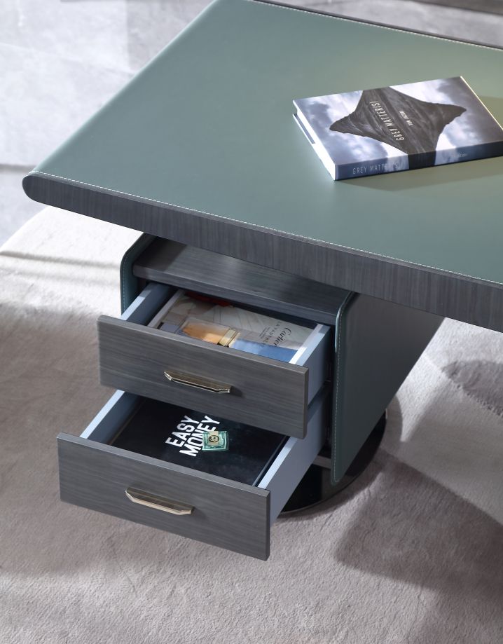 Mirror-finish black titanium gold hardware; matte light and shadow wood + matte black paint inside the cabinet; the countertop and the rear side of the base cabinet are surrounded by AL160B type saddle leather.